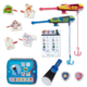 - 13-piece play set includes wooden take-along case/game board with built-in spinner, 2 badges, double-sided activity card/scorecard, 5 wooden play pieces, 2 wooden drone fishing rods, 3-page Flashlight Finder Pup Pad, Flashlight Finder flashlight