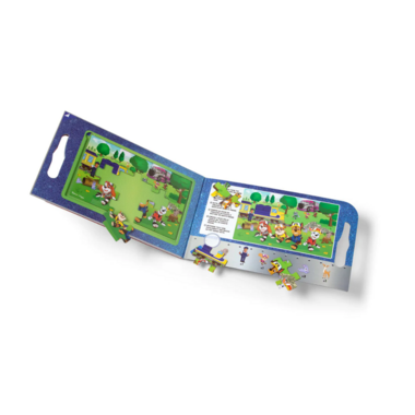 2 magnetic puzzles with 15 pieces each. Pieces are shape-coded on the back for easy sorting. Search-and-find activities for each completed puzzle. With a built in handle makes it great for travel.