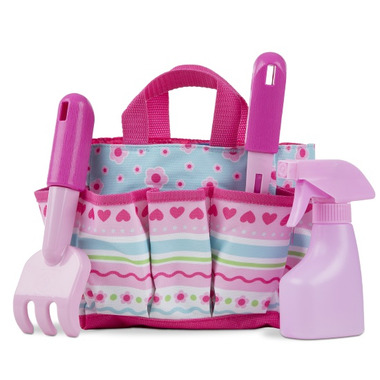 With this kid-friendly garden tote, complete with tools, getting help in the garden just got easier! The sturdy plastic tools are just right for little helpers and easy to keep organized in this durable and brightly coloured fabric tote with woven handles. An included spray bottle helps keep plants watered and little gardeners cool! Use it inside for pretend play or outside when kids want to do some digging.