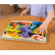 This extra thick wooden puzzle includes seven easy-grasp, chunky dinosaur pieces with a full-color, matching picture underneath. The dino pieces stand upright for pretend play. Encourages eye-hand, fine motor and creative expression skills.