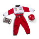 Kids will be off to the races with this realistic role play set! The high-quality costume includes a sturdy helmet with adjustable face mask and zip-up jumpsuit complete with colorful racing emblems. A soft steering wheel features enough printed details like knobs and dials to satisfy any racing fan. This is one role play set that’s sure to drive straight into the winner’s circle!