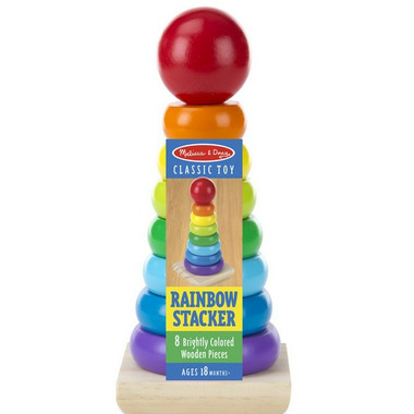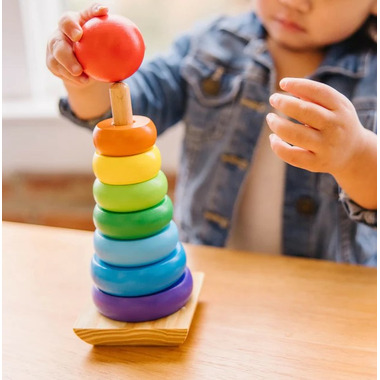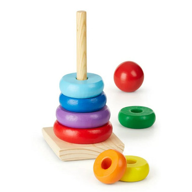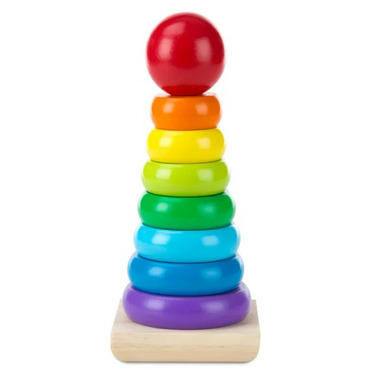 Talk about a classic childhood toy! All the colours of the rainbow are represented by these eight smooth, easy-grasp wooden pieces. Stack them on the solid-wood base, designed with rocking edges for safe and intriguing play.
