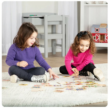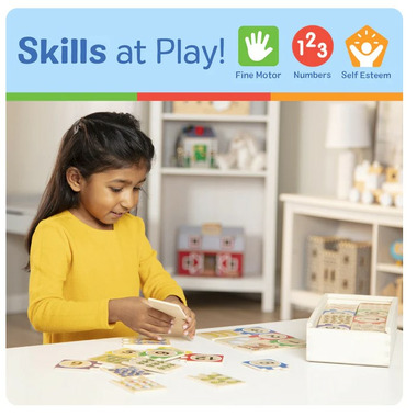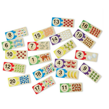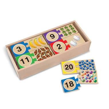 Kids can match these wooden puzzle pairs to make mastering numbers as easy as one, two, three! Groups of different objects illustrate numbers 1-20, and the puzzles are self-correcting because each puzzle piece has only one match that fits. It's a great way for children to play independently and learn at the same time. The puzzle includes 40 high-quality wooden pieces, and comes in a sturdy wooden box with a slide-in lid for easy storage and accessibility.