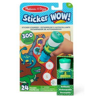 Melissa and Doug Sticker WOW! Is a whole new way to play with stickers - use the cute, collectible character to stamp prehistoric-themed stickers on the 24-page Dinosaur activity pad and on other creative art projects. Includes Sticker WOW! Olive the Dinosaur collectible sticker stamper, 300 easy-to remove stickers (100 unique prehistoric-themed designes), and 24-page activity pad. Fun stamp-and-learn activities include numbers, counting, matching, search-and-find, and more.