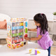 - Sort play food items, stock the wooden vending machine, then insert play coins and make a selection by pressing the corresponding button and watch items fall into the collection drawer