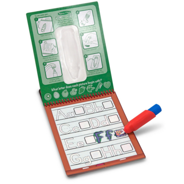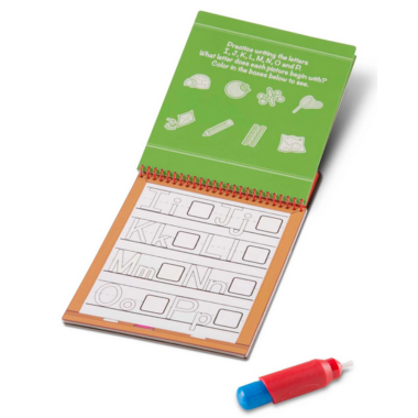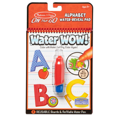 This exciting activity book includes four reusable pages and a refillable water pen. Use the pen to fill in each activity, from coloring in boxes to tracing letters, and see hidden colors and pictures appear with every stroke!