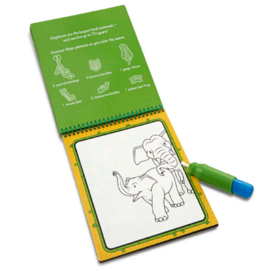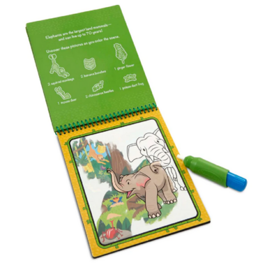 - 4 spiral-bound jungle animal-themed coloring boards (tigers, crocodiles, gorillas, elephants) and refillable water pen