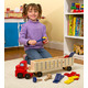 This tough, two-piece tractor-trailer is ready to roll . . . and ready to build! Packed with wooden construction pieces and pre-drilled with holes for the wooden nails and bolts, the truck itself is a moving building site. Connect the painted building boards to create brightly colored structures on wheels! The 22 wooden pieces--including a hammer, screwdriver, wrench, board, nails, nuts and bolts--store away inside the trailer to keep your little builder's supplies organized for the next big job. Big Rig Building Set is great for fine motor skills, hand-eye coordination and problem solving, and encourages imaginative play and manual dexterity.
