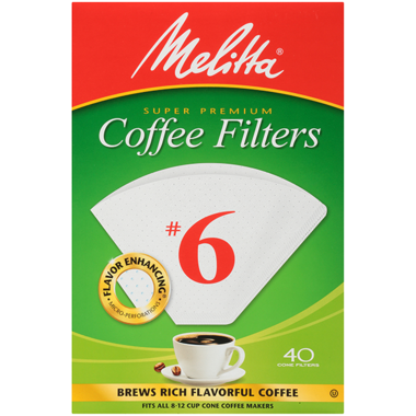 Brew up to 10 cups of coffee with one white No. 6 Cone Coffee Filter. This pack comes with 40 disposable coffee filters.