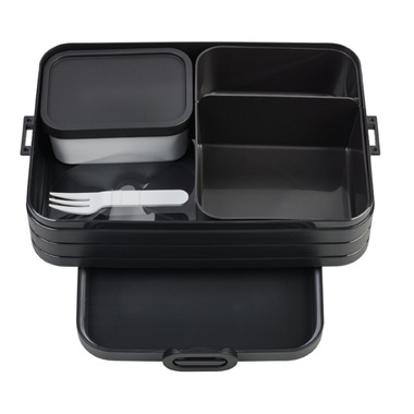 Leftovers from yesterday? Take them with you, no problem. The two separate sections, plus an extra box with a little fork, allows the Bento in your lunchbox to always keep your lunch nice and fresh!