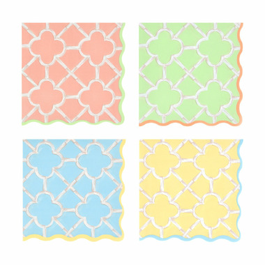 Made from 3 ply paper, each pack contains 4 fresh colors - 4 x yellow, 4 x sky blue, 4 x pink and 4 x pistachio. Finished off with a wavy coloured coordinating border