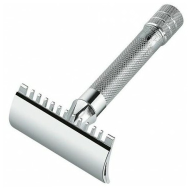 Experience the closest shave ever with this Merkur Double Edge Safety Razor. This razor is gentle on the skin and will not aggravate sensitive skin. Features an open tooth comb and Chrome handle.