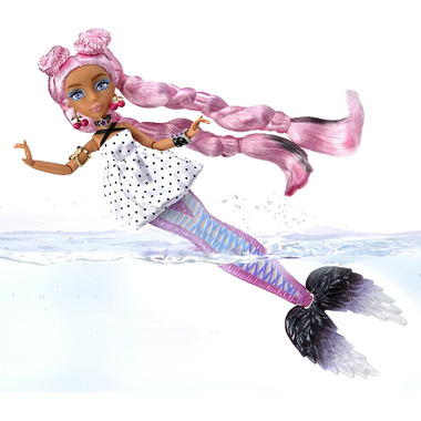 - MAGICAL COLOR CHANGE FIN & MAKEUP: Morra's "sweet" fin changes from ombre pink and white to ombre black and white when it comes in contact with ice cold water. Her makeup also changes color with ice cold water! You'll see her eyeshadow transform to black and stars appear under her eyes.