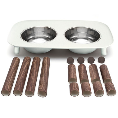 Your one-stop feeder for all of your messy mutts needs. This raised double diner not only accommodates food and water with its 2 stainless steel dog bowl inserts and contains spills with its wide lip and raised edge border, but it also grows with your dog! The 3 different heights make feeding easier, cleaner and healthier for your dog.