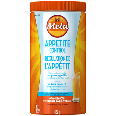 Meta Appetite Control contains 100% psyllium fiber, which naturally works with your body, is great-tasting and will help you feel less hungry between meals and control cravings. Psyllium is a natural fiber ingredient originating from Plantago ovata. The psyllium in Meta Appetite Control works by forming a gel in your digestive system, which aids in the sensation of fullness.