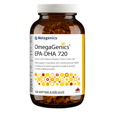 Metagenics OmegaGenics EPA-DHA 720 Lemon-Lime Flavour helps support cognitive and cardiovascular health.