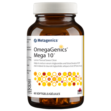 Metagenics OmegaGenics Mega 10 Lemon Flavour helps to reduce serum triglycerides and blood levels of CRP.