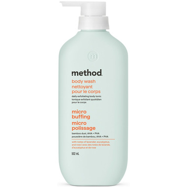 Method Body Wash, Daily Exfoliating Body Tonic - with notes of Lavender, Eucalyptus and Rose. This body tonic has a curated blend of physical and chemical exfoliants for what your skin needs. Its bamboo dust micro-buffs rough skin and AHA + PHA smooth texture for daily softness. With herbal notes and skin this silky, its the perfect reset moment.