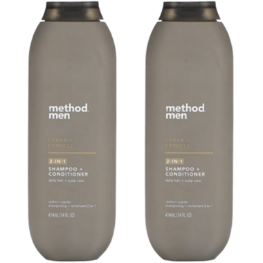 - 2 x Method Men's Shampoo 2-in-1 Cedar & Cyprus - 414mL