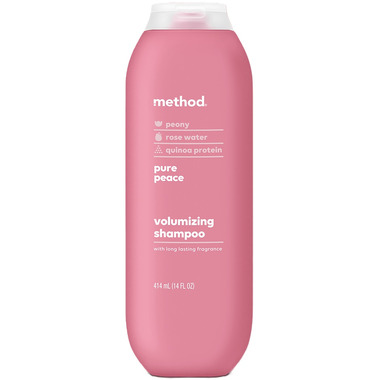 • A volumizing shampoo infused with peony, rose water + quinoa protein.