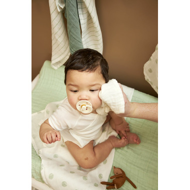 Indispensable while feeding your baby, these plain, Meyco Baby pre-washed muslin mouth cloths 3-pack. Just a dab and the mouth is clean again. They are made of 100% muslin cotton. This makes them wonderfully soft for baby's delicate skin. They also absorb moisture very well and are quick-drying. The mouth wipes (also often called spit wipes) are also perfect to use as flannels or cuddly towels.