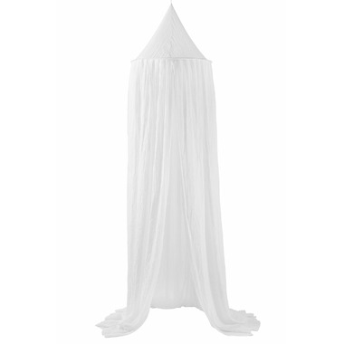 This beautiful veil Plume brings a chic, classic atmosphere to your child's bedroom. Thanks to the subtle, embroidered dots, the veil creates an elegant, atmospheric accent above the bed. The veil provides an extra sense of security for your little one. Simply attach the veil to a matching peaked pole with ring. (This is not included). The veil is made of 100% polyester and is available in chic white. This makes it easy to match the baby's room and the veil also matches perfectly with the rest of the complete Meyco Baby collection.