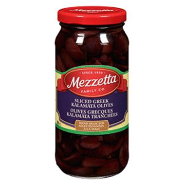 Sliced Greek Kalamata Olives Certified Gluten Free; Keto; No artificial colors or flavors; sourced from Greece.