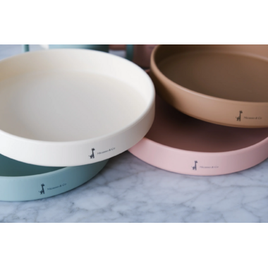 Miscasso & Co.'s platinum-grade silicone plate perfectly complements the tableware set and is available in the same colors to grow with your little ones. It can be washed with soapy water, is dishwasher safe, and is heat-resistant, making it microwave safe.