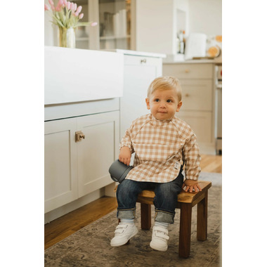 Micasso & Co Long Sleeved Bib with Integrated Pocket Vichy Caramel