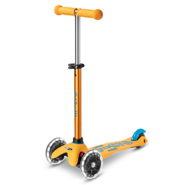 The top-rated, best selling Mini Deluxe LED scooter features motion activated LED wheels with no batteries required. Safe, stable, and designed with an adjustable T-bar so children can easily hop on and off, and use their body weight to steer. A fun and healthy way to play as they develop instrumental skills along the way such as balance, coordination and confidence.