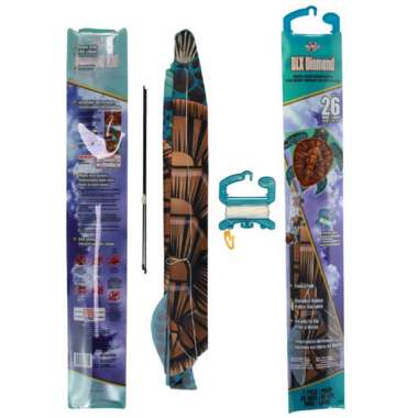 - SEATURTULE KITE SPECS: 26 Inches Wide, the DLX Diamond comes with SeaTurtle DLX Diamond Nylon Deluxe Diamond Kite Sail, Fiberglass Airframe, FancyTail, Kite Handle, and 120ft of 15lb Kite Line with QuikClip