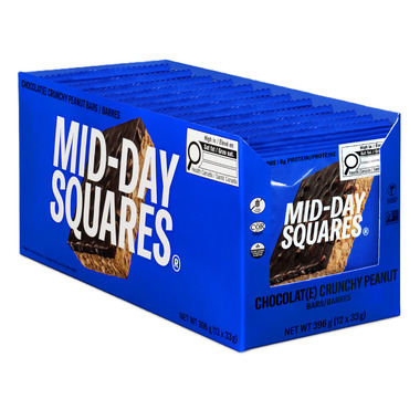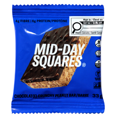 Mid-Day Squares Crunchy Peanut is a functional square + chocolate that satisfies sweet cravings.