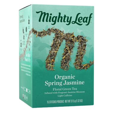 Organic Spring Jasmine is made of smooth China green tea leaves skillfully scented by layers of pure, sweet jasmine blossoms. With an intoxicating aroma and a piquant yet rounded cup, Organic Spring Jasmine is Mighty Leaf's twist on a Chinese classic!