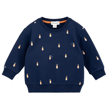 This navy sweatshirt is printed with mini pop bottles for orange soda fanatics. Made from organic cotton terry, the sweatshirt is gentle and cozy for all day wear, while the elasticated cuffs help to keep in the warmth. The rounded neckline makes it easy to pull over the head on sleepy mornings too.