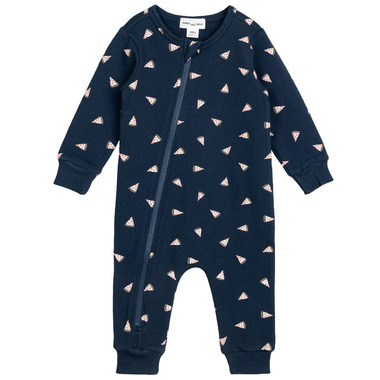 Everyone loves pizzas – big kids and small! This fun playsuit with an all-over pizza print keeps them comfortable, snug, and perhaps a little hungry. With elasticated cuffs and ankles, the suit has a comfy fit that will keep them warm in the stroller. The full-length zip along the front of the piece makes dressing quick and easy on chilly mornings. Made from French terry, the playsuit is light and delicate on their skin, keeping them at the right temperature all day.