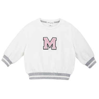This vintage style sweatshirt is perfect for any cool kid. With striped elasticated cuffs and a rounded neckline, the sweater is easy to throw on over a tee and jeans for kicking back at the weekend. Made from organic cotton terry the sweater is super soft and flexible, so it’s perfect for all day wear. On the front, there's a letterman style M for that cool varsity look.