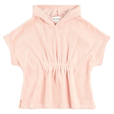 Shell be pretty-in-pink as she dries off by the water in this cozy hooded beach cover. With a cinched waist and short sleeves, the cover sits comfortably in place so shes able to continue playing or snacking while wearing it. A little pompom trim on both sleeves adds a playful touch.