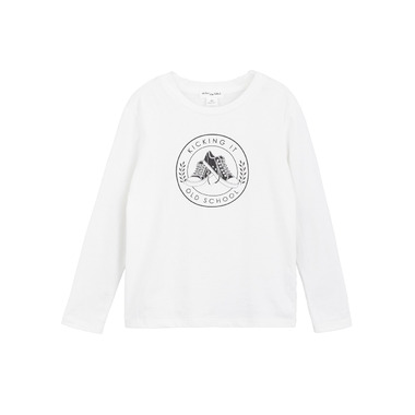 Perfect for weekend play dates, this long-sleeved tee has a kicking it old school motif in the centre. With a rounded neckline and a straight cut, the top has a relaxed, comfortable fit and cool style that looks great with the jeans from the same range. Made from organic cotton jersey, the top is light and breathable while still keeping them toasty and warm.