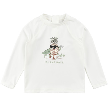 This playful rash guard features a cool-dude pineapple design, ready to hit the waves with your little dude. With long sleeves, the top keeps them a little warmer while heading into the water.