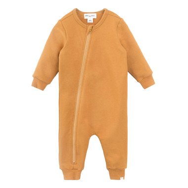 This perfectly on trend, mustard yellow playsuit is made from an organic cotton fleece for a toasty Fall outfit choice. Fitted with elasticated cuffs, ankles and a full-length zipper, the sleeper is easy to pull on and off wriggly little ones. For chilly days, layer with a matching crewneck, or co-ordinate older siblings with contrasting colours from the same range.