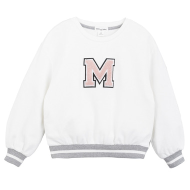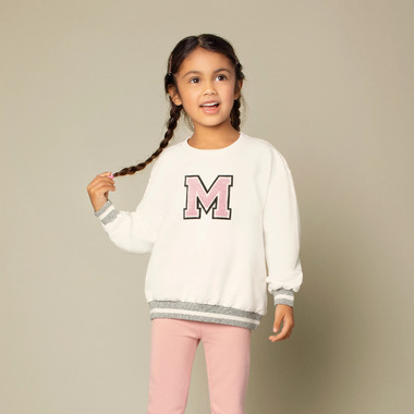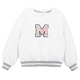 This vintage style sweatshirt is perfect for any cool kid. With striped elasticated cuffs and a rounded neckline, the sweater is easy to throw on over a tee and jeans for kicking back at the weekend. Made from organic cotton terry the sweater is super soft and flexible, so it’s perfect for all day wear. On the front, there's a letterman style M for that cool varsity look.