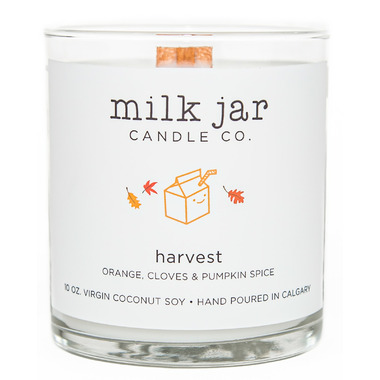 With spicy aromas of orange peel, cloves, & warm pumpkin spices, this Milk Jar will make you want to cozy up with a mug of hot pumpkin cocoa. Scented with fine fragrance oils.