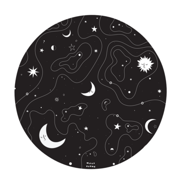 CONSTELLATION: A fun monochromatic space design. Playful faces on the moon, sun and stars bring the galaxy to life and inspire imaginative play.