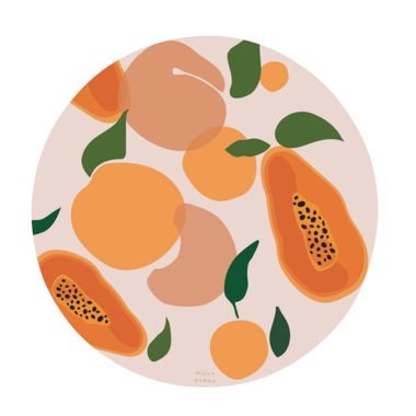 JUICY FRUIT: Oranges, peaches, papayas, oh my! TheJuicy Fruit design is a cheerful reminder of the sweet taste of summer, all year round.