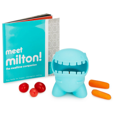 Milton is the fun way for you to teach your children about healthy and courageous eating. When you place Milton on the table during meal time, he becomes an eating role model for your child. Ask your child to feed Milton new foods and show them how “Milton loves it”. Squeeze his adorable cheeks to show how he safely chews each bite. The uses are just about endless!