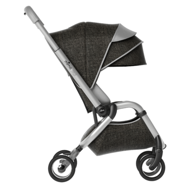 t?s sturdy, but still lightweight ?only 8.4 kg/18.5 lbs- and is incredibly easy to handle Elegant looks combined with a simple, compact fold achievable with just one hand make Zigi the most desirable travel companion for families on the go Compact, one-hand folding Folding is a breeze. Hold your baby in one arm, fold Zigi with your free hand and leave the folded buggy to stand upright. A huge advantage of Zigi is that the super compact folding size (L45 x W26 x H56 cm) is accepted as cabin luggage with most airlines Innovative transparent wheels The transparent wheels don?t only look good, they are also extremely durable and lightweight Large basket Baskets deserve to look elegant as well. Your belongings are kept nicely out of sight by the typical Mima basket cover Pioneering rear suspension The suspension on Zigi facilitates a smooth ride. Despite its simple appearance, many hours of structural engineering have been spent developing this innovative aspect. Fit for a newborn seat and car seat The easily removable backrest means that the chassis then accommodates adapters for the Zigi newborn seat and various car seats. Newborn babies are more than welcome! A backrest that can recline up to 150 degrees ? perfect for napping on the go An adjustable handlebar ? accommodating parents and guardians of all heights A triple flap canopy offering UV protection and almost total shade Maximum weight of child: up to 17kgs/ 37lbs