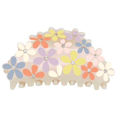 The charming new Flower claw clip is bursting with colour and sparkle! Featuring multi-coloured blooms finished with glittering diamante centres, it's the perfect statement piece!