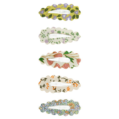 Add a touch of floral charm with these sweet scalloped mini clic clacs. Coming in a colourful combo of ditsy print fabrics, these are perfect for updating their look this Spring time!