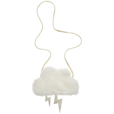 Come rain or shine she is sure to love this awesome super soft furry cloud bag. Made from the softest faux fur and with a delightful glitter lightning bolt detail, this bag is has a magnetic fastening and gold metallic faux leather strap. Get ready to strike a pose! Features a magnetic closure and 48cm strap drop length.