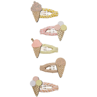 These adorable mini clips each feature a wonderful little waffle cone piled high with pastel scoops or gorgeously glittery gelato.Perfect for adding a sprinkle of sweetness to any outfit!